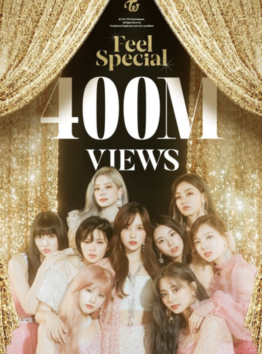 4억뷰를 넘긴 영상은 '티티(TT)', '라이키(LIKEY)', '왓 이즈 러브?(What is Love?)', '치어 업(CHEER UP)', '팬시(FANCY)', '우아하게(OOH-AHH하게)', '하트 셰이커(Heart Shaker)', '필 스페셜(Feel Special)' 등 입니다.