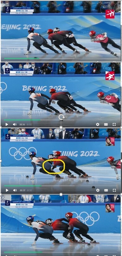 황대헌은 이미 앞으로 빠져나간 상태에서 플레이에 지장을 주는 접촉 장면은 찾아볼 수 없지만 이 부분이 황대헌의 실격 장면이라는 것입니다.