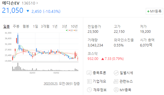 에디슨EV 주가 하락 이유