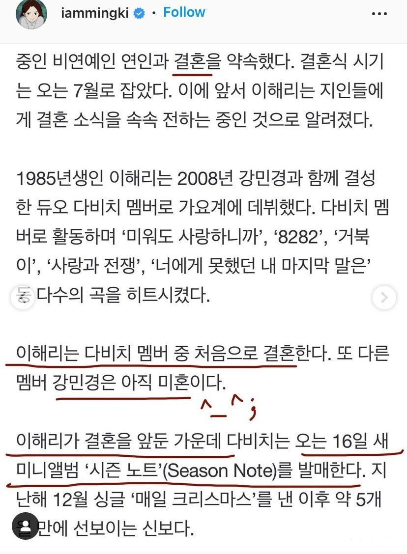 다비치 이해리의 깜짝 결혼발표 소식이네요!