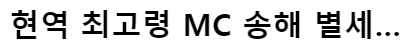 현역 최고령 MC 송해 선생님이 8일 자택에서 별세했다는 뉴스입니다.
