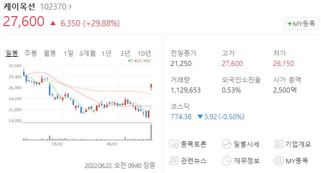 미술품 경매 업체 케이옥션이 보통주 1주당 2주를 매정하는 무상증자를 결정했다고 밝히면서 주가가 상한가를 기록했다.