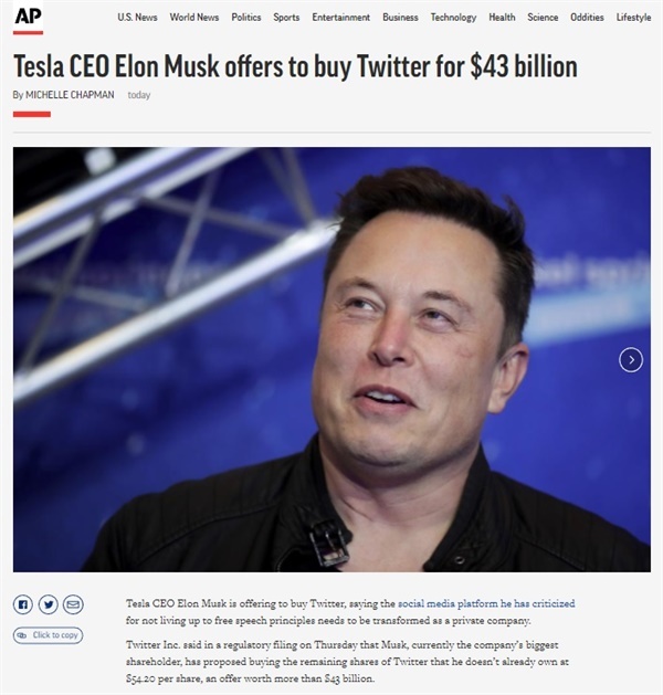 일론머스크가..결국 스팸 및 가짜 계정 비율 문제로 57조 원짜리 트위터 인수를 계약 파기했다.