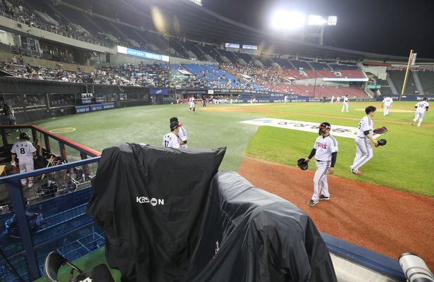 29일 오후 서울 송파구 잠실야구장에서 열린 프로야구 '2022 신한은행 SOL KBO리그' kt위즈와 LG 트윈스의 경기서 5회 이후 중계차 문제로 경기가 중단되는 사고가 발생했다.