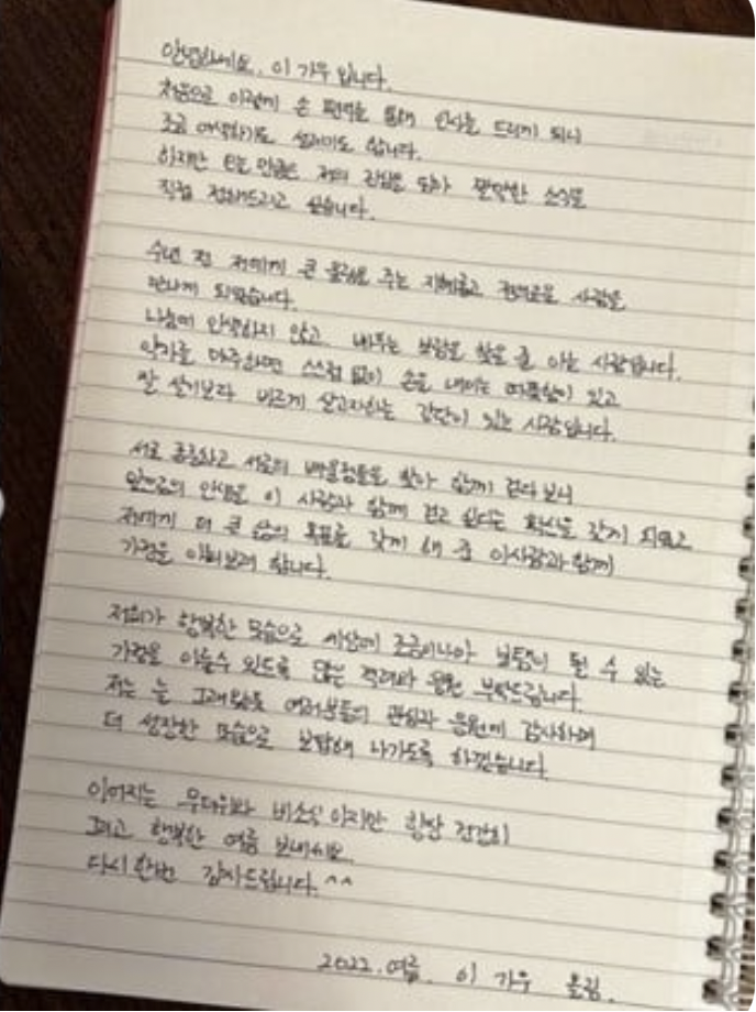 처음으로 이렇게 손 편지를 통해 인사를 드리게 되니 조금 어색하기도 설레기도 합니다.