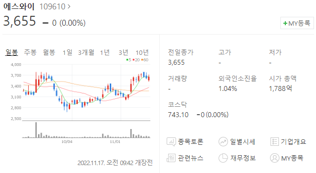 최근 계속해서 우상향 곡선을 그리며 상승하고 있는 에스와이