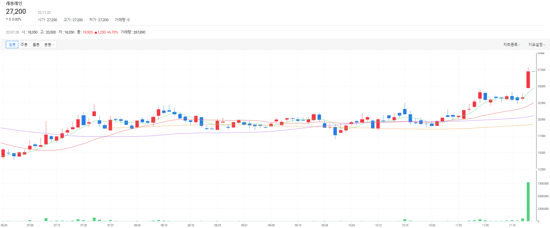 어제는 16.74%라는 엄청난 급등을 하며 장을 마감했다.