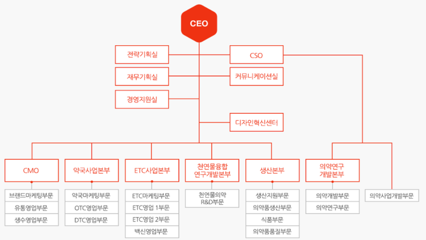 매출 중 98.7%는 내수시장에서 발생하고 있다. 위와 같이 다양한 전문의약품 및 식음료 판매를 위해 평택시 장당동에 15,000여평 규모의 식품공장과 평택시 모곡동에 GMP공장 등을 갖추어 제품을 생산하고 있으며, 일부제품은 OEM방식을 통해서 생산하고 있다.