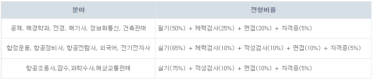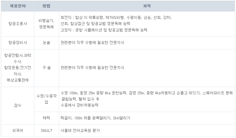 - 신체검사 : 해양경찰공무원 채용시험 신체조건표에 의한 자체신체검사
