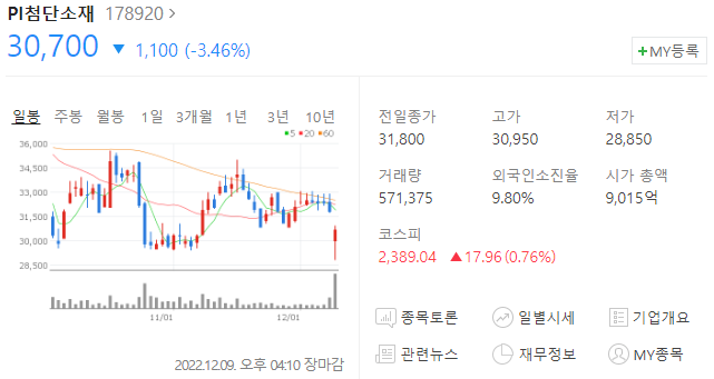 PI첨단소재 주가 하락 이유