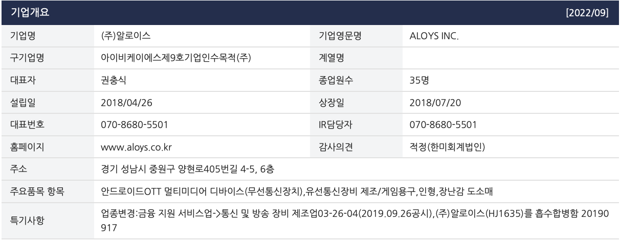 알루코는 2015년 6월 알루미늄 제조의 제품 및 판매업을 영위할 목적으로 설립되었으며, 2007년 6월 유가증권시장에 재상장하여 현재까지 사업을 영위 중이다.