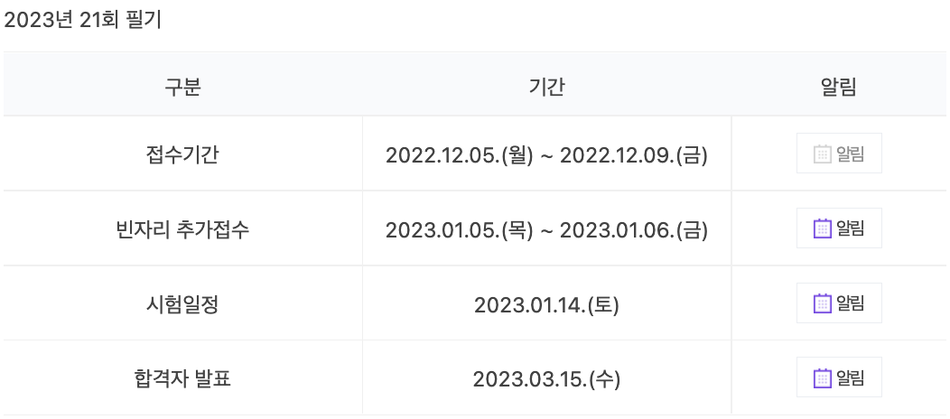 보통 12월에 접수를 받고 1월에 시험이 시행됩니다.