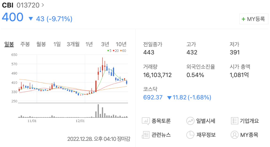 CBI의 갑작스러운 주가 상승 이유는 CBI의 관계사인 대한그린파워가 SK에너지와 신규 사업을 공동 추진하기 때문이다.