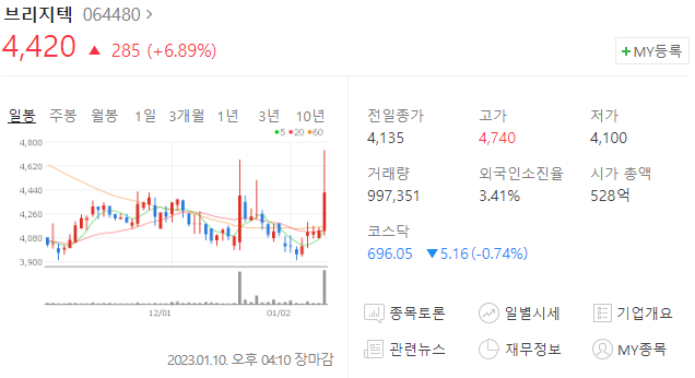 시간외 거래에서는 9.95% 상승하며 상한가를 기록했다.