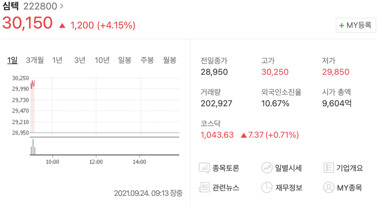 심텍이 증권사들의 역대급 3분기 전망으로 강세를 보이고 있다.