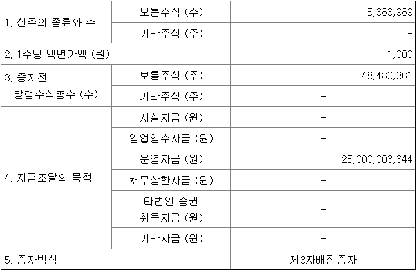 이번 제3자 배정 증자의 목적은 벤처캐피탈 및 프라이빗에쿼티(PE) 펀드 결성을 통한 투자재원 확보와 실적 확대를 위한 운용사(GP) 펀드 출자금 납입 등을 위한 운영자금 마련이다.
