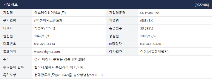 - SK그룹 산하 SK텔리콤이 하이닉스반도체를 인수하여 2012년 3월 SK하이닉스로 출범시킨 메모리반도체 전문 생산 기업