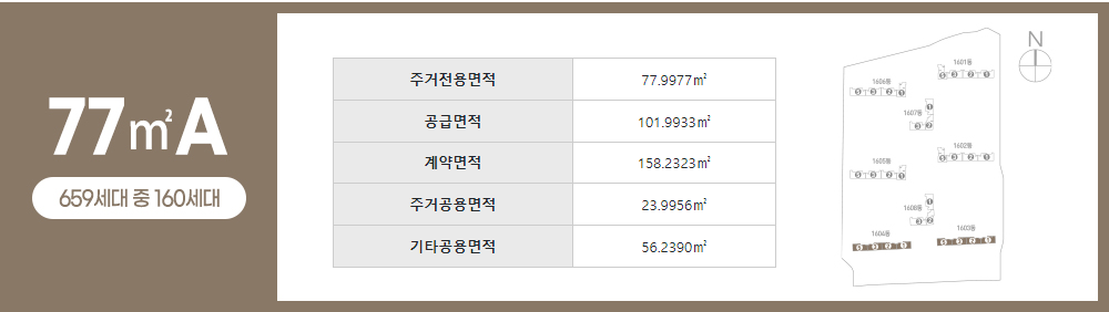 77㎡A(160세대) 3억 3400만 원 ~ 3억 6400만 원