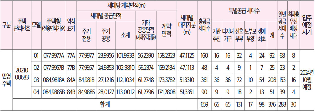 [특별공급 376세대(기관추천 특별공급 65세대, 다자녀가구 특별공급 65세대, 신혼부부 특별공급 131세대, 노부모부양자 특별공급 17세대, 생애최초 98세대) 포함]