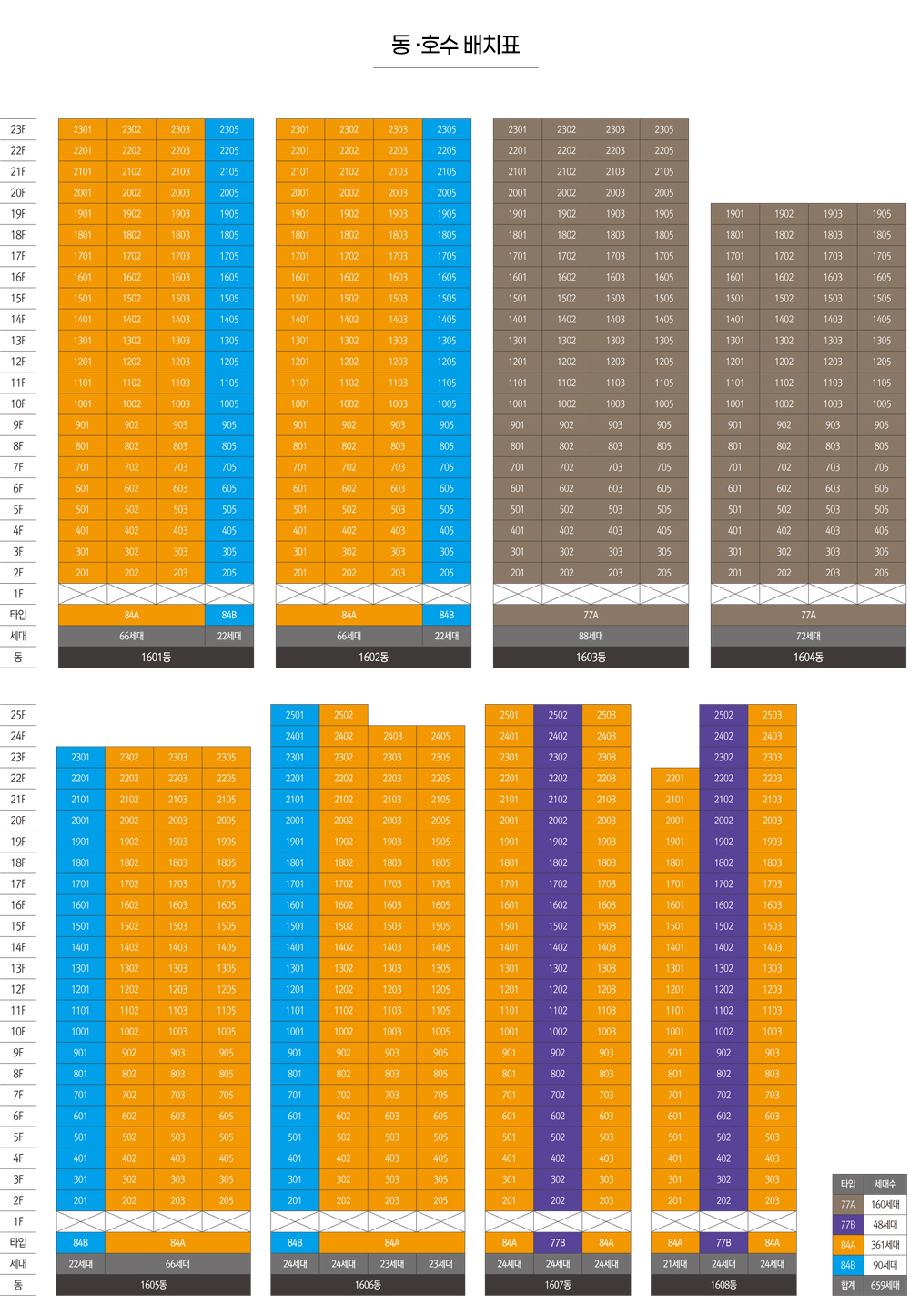 오산 세교2지구 A-9블록 중흥S-클래스 에듀하이 단지 및 동·호수 배치도