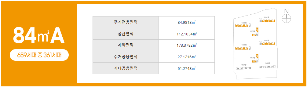 84㎡A(361세대) 3억 7500만 원 ~ 4억 500만 원
